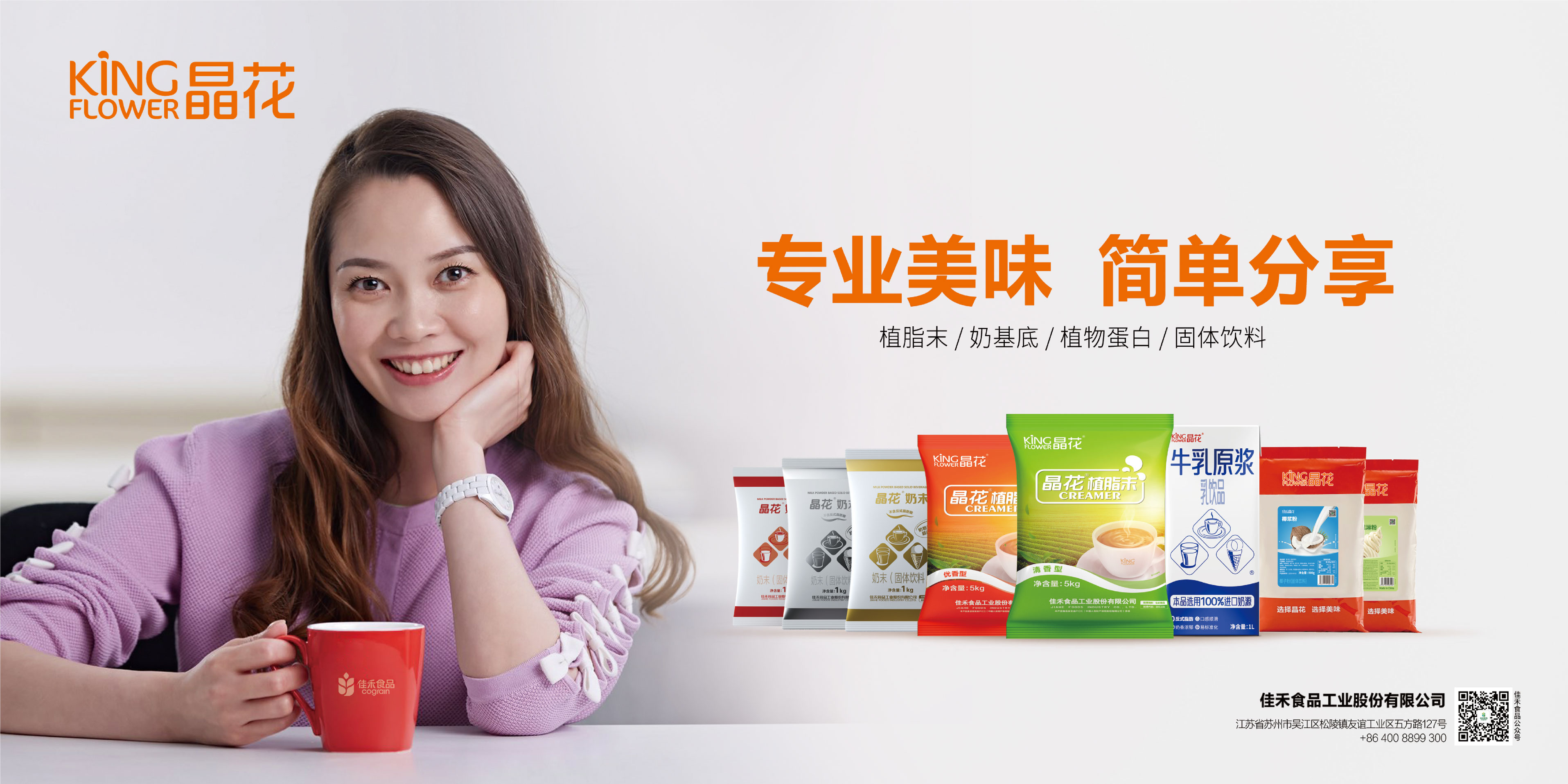 晶花是一个专注于食品配料产品的品牌,其中粉末油脂产品销量稳居全球前列,是中国规模大、产品线完整的食品配料专业生产加工品牌,在亚洲同行业中具有现代化程度高、产品品质好、生产规模大等优势。晶花品牌专注健康安全,为更多人带来点滴美味和幸福。